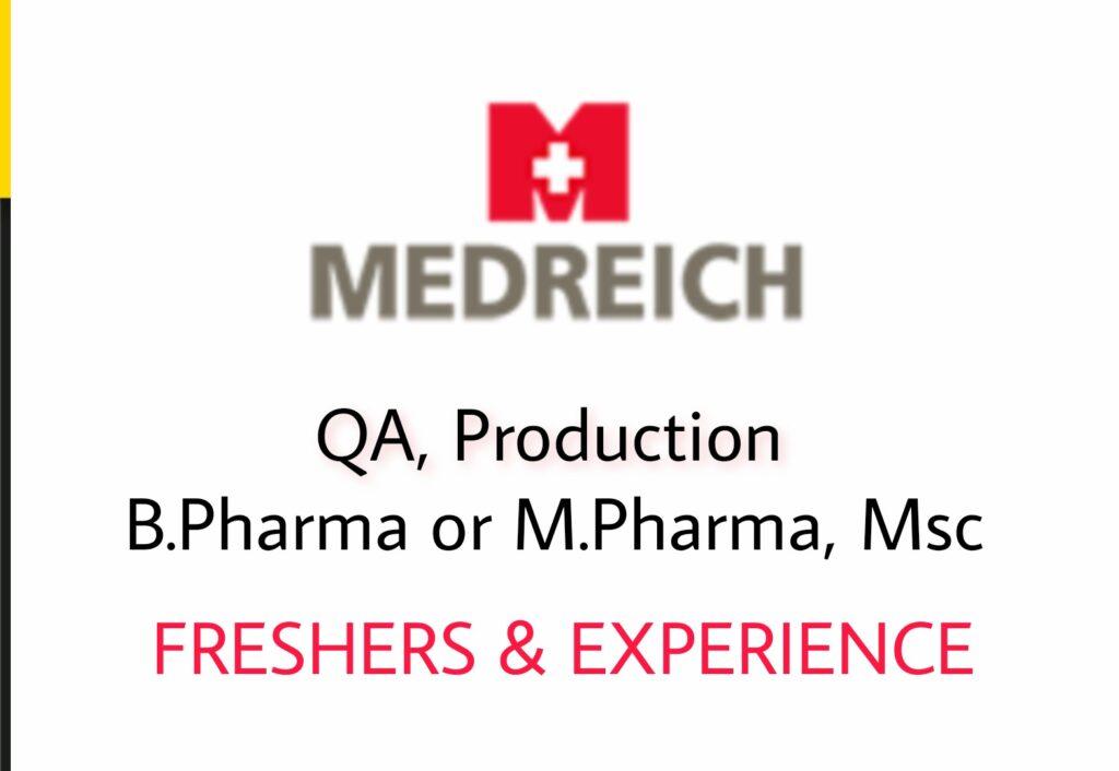 Medreich Limited Walk-in-Interview for OSD manufacturing- QA, Production – Freshers & experience B.Pharma or M.Pharma, Msc candidate on 23rd November, 2022