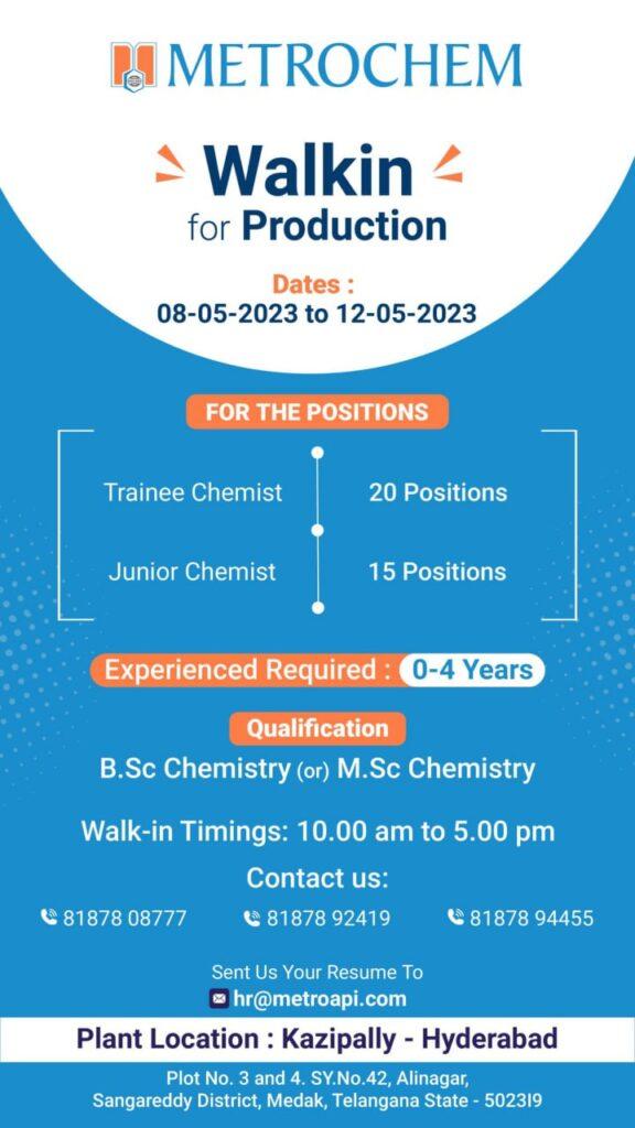 Qualification: B.Sc Chemistry (or) M.Sc Chemistry