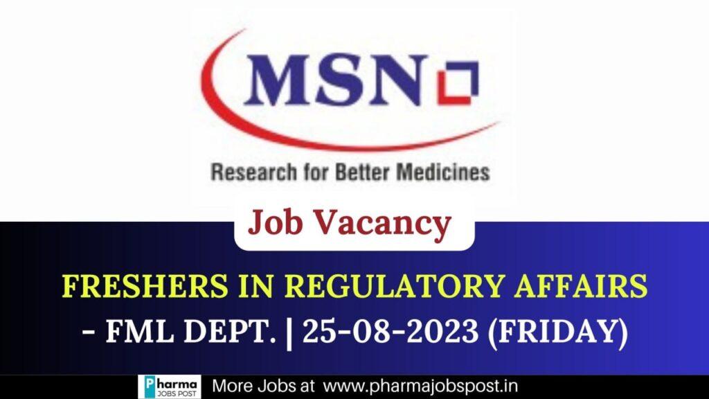 MSN Hiring for freshers in Regulatory Affairs – FML Dept. | 25-08-2023 (Friday)