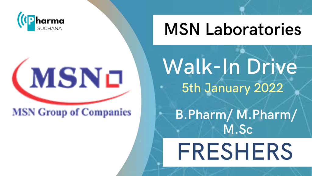 Walk In drive for B Pharmacy/ M Pharmacy/ MSC Freshers for Quality Control Department in Formulation Division on 05.02.2022 ( Saturday).