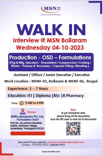 WALK IN Interview @ MSN Bollaram