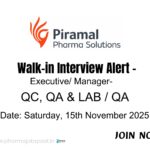 MSN Laboratories, one of India’s leading pharmaceutical research and manufacturing companies, has announced a walk-in interview for experienced engineering professionals at its R&D Center in Pashamylaram. This recruitment drive is scheduled for 15th November 2025 and aims to hire qualified candidates for key technical positions.
