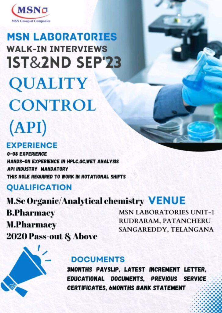 MSN Laboratories- Walk In Drive on 1st & 2nd September 2023