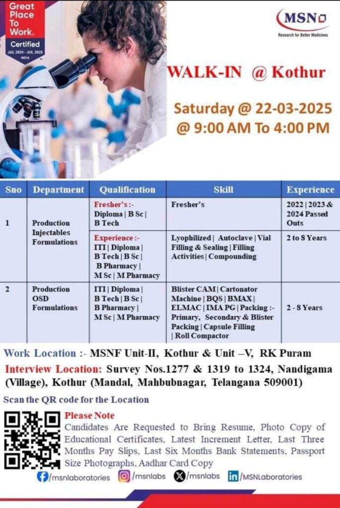 MSN Laboratories is a leading pharmaceutical company based in India, known for its expertise in research, development, and manufacturing of active pharmaceutical ingredients (APIs) and finished dosage forms. Established in 2003, MSN has grown into a global player with a strong presence in over 65 countries.
