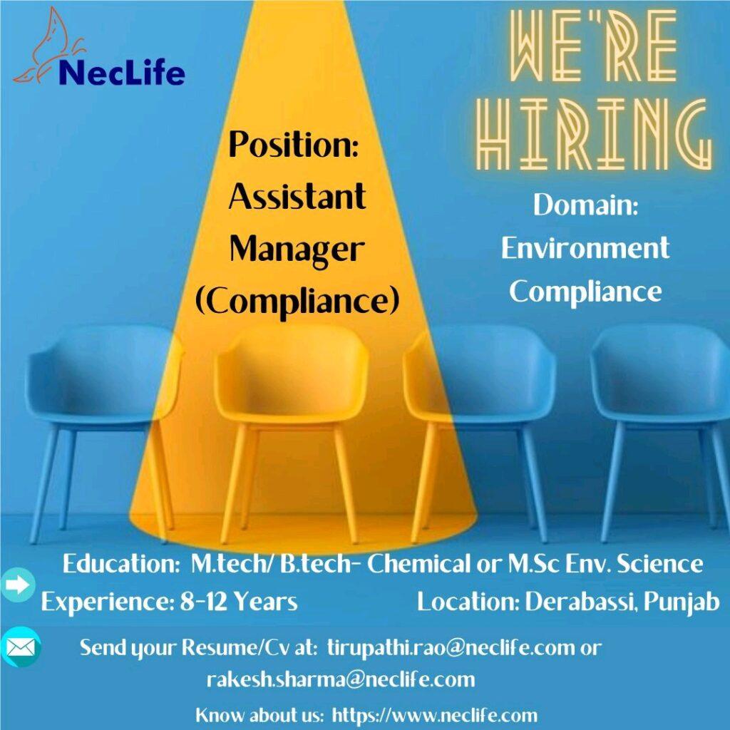 Nectar Lifesciences Limited hiring Asst. Manager (Environment Compliance) Derabassi, Punjab