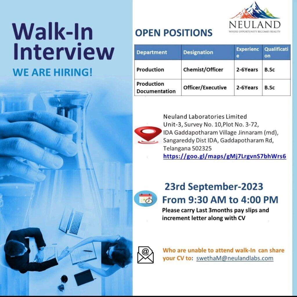 Who are unable to attend walk-In can share your CV to: swethaM@neulandlabs.com