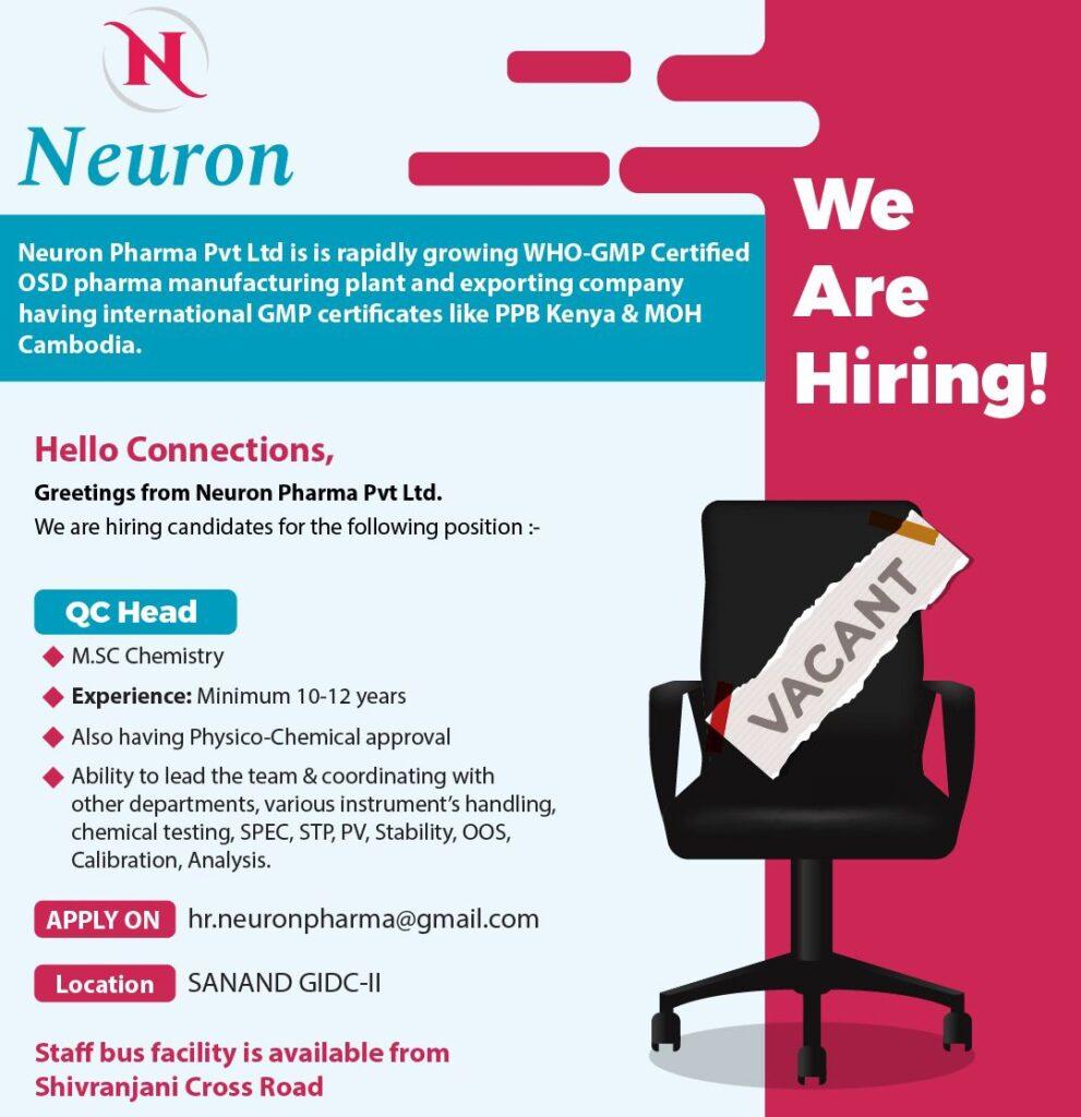 Neuron Pharma job vacancy for QC Head – Apply Now