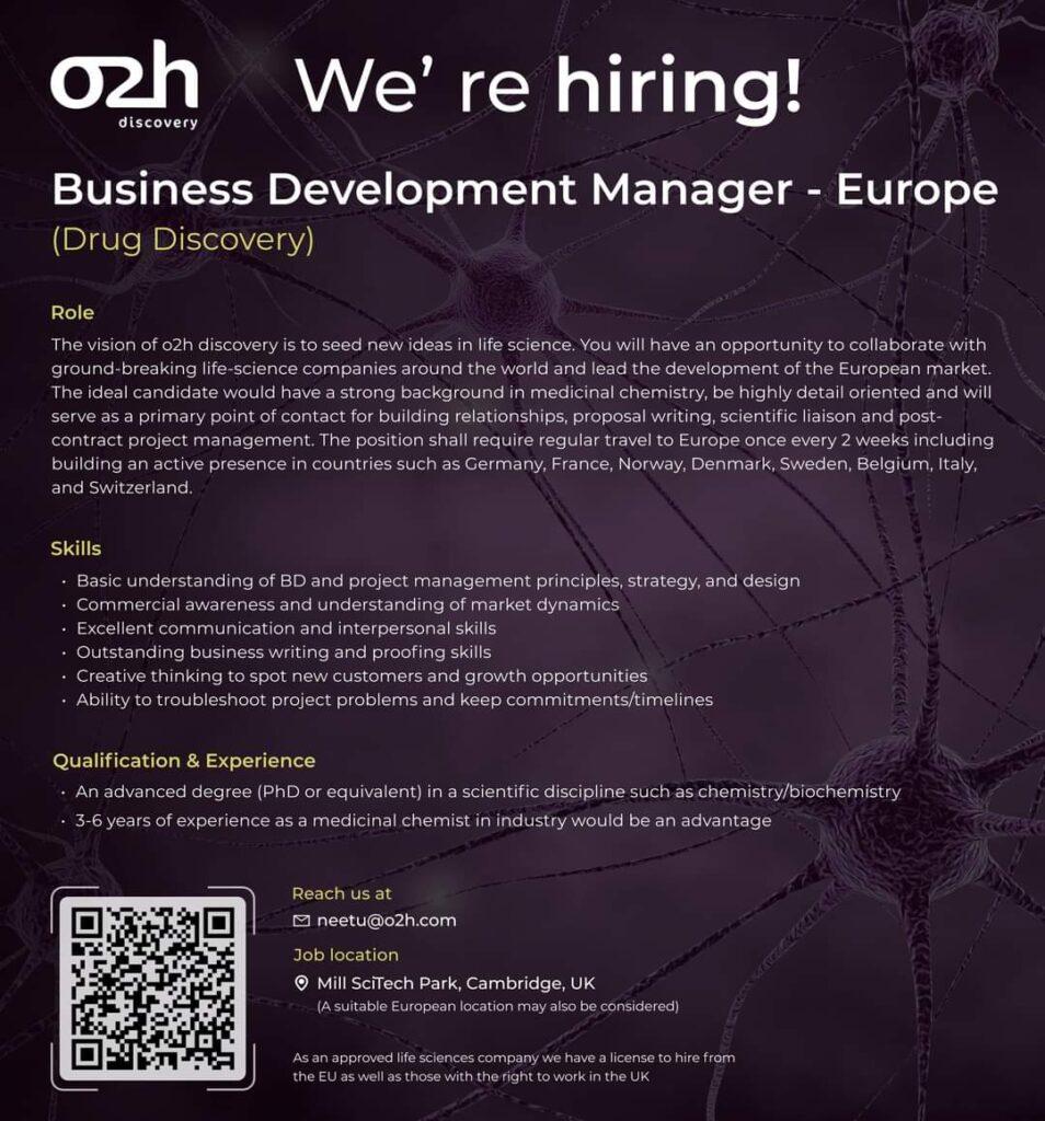 o2h Discovery hiring Business Development Manager (Drug Discovery) – Europe Market