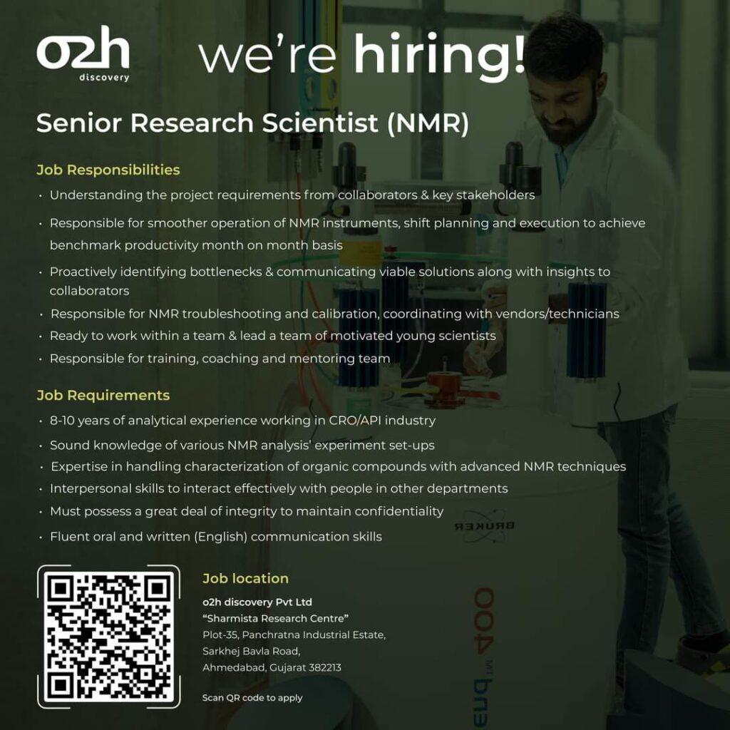 o2h discovery Pvt Ltd hiring Senior Research Scientist (NMR) @ Ahmedabad