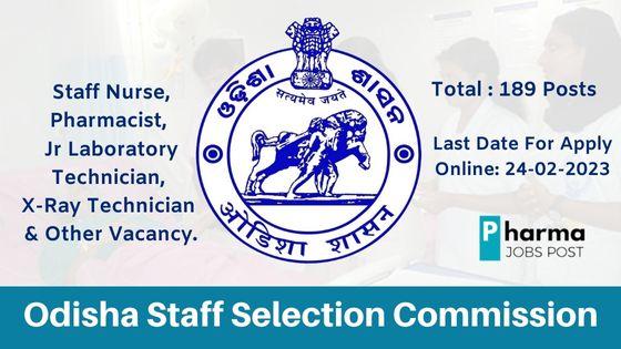 Odisha Staff Selection Commission (OSSC) has given a notification for the recruitment of Staff Nurse, Pharmacist, Jr Laboratory Technician, X-Ray Technician & Other Vacancy. The total number of vacancies is 189 Posts