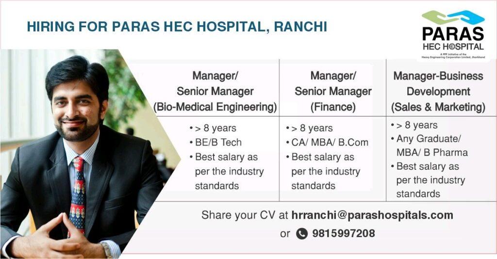 HIRING FOR PARAS HEC HOSPITAL, RANCHI