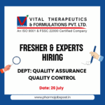 Education: M.Sc(Chemistry)/B. Pharm/M. Pharm