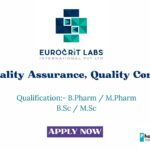 - Qualifications: M.Pharma, B.Pharma, M.Sc. Chemistry, or B.Sc. Chemistry.