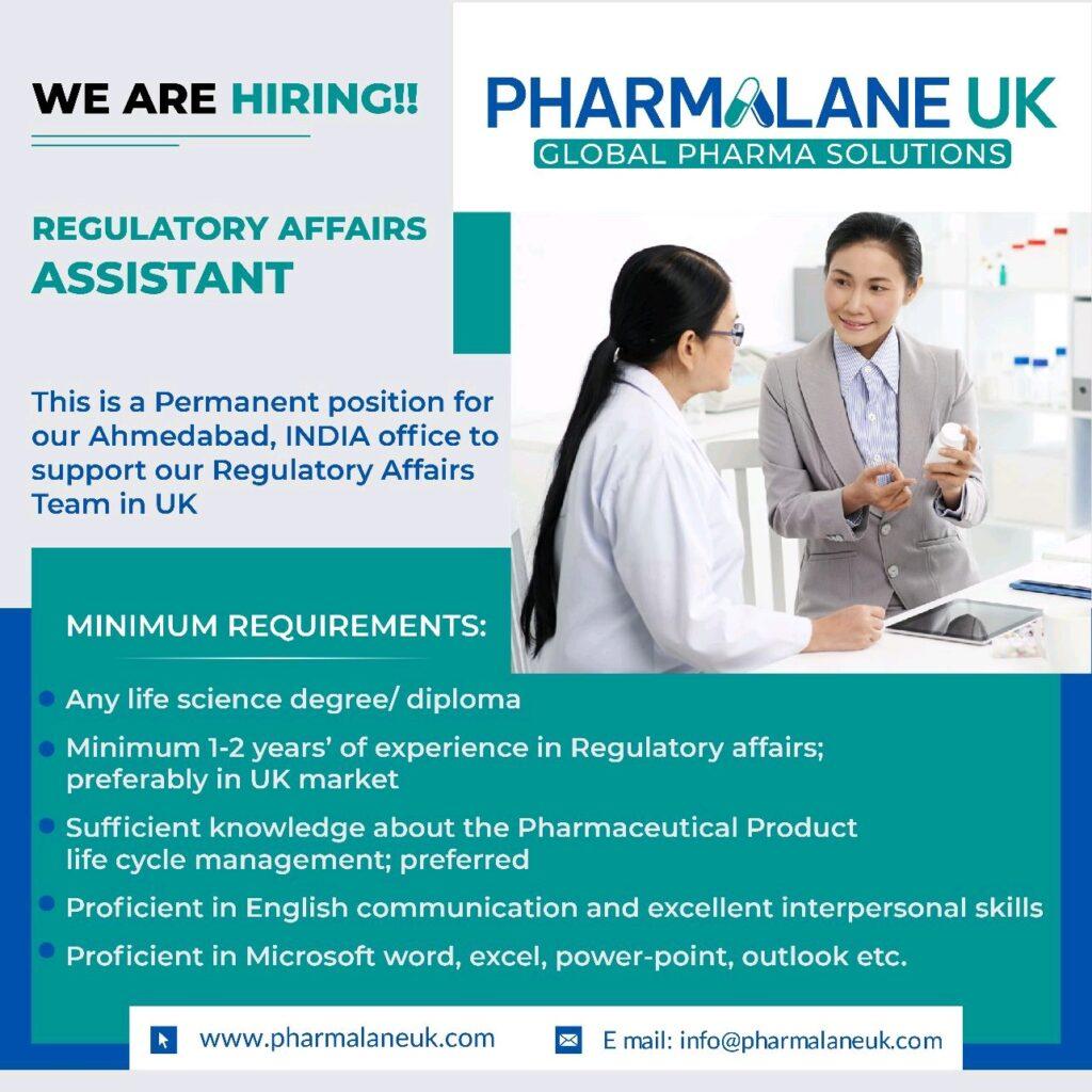 PHARMALANE UK hiring REGULATORY AFFAIRS ASSISTANT at Ahmedabad
