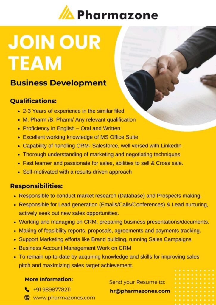 Pharmazone looking for Business Development candidates || 2 to 3years experience