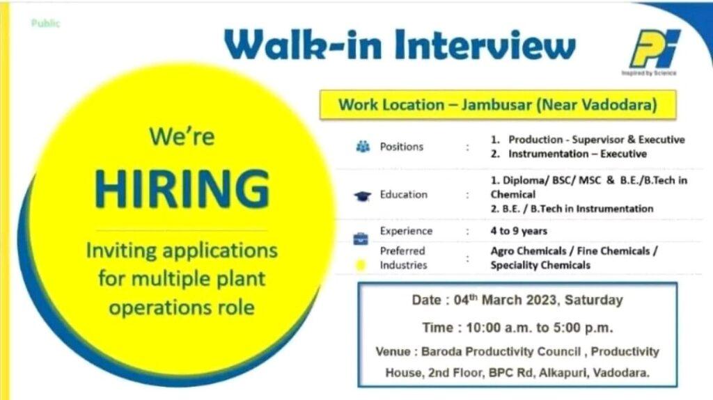PI Industries- Walk-in Interview for Production-Supervisor & Executive, Instrumentation-Executive on 04th March 2023