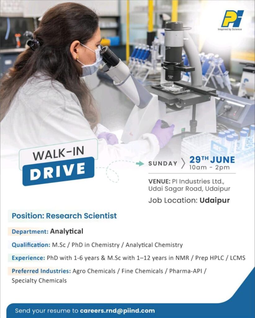 VENUE: Pl Industries Ltd., Udai Sagar Road, Udaipur Job Location: Udaipur