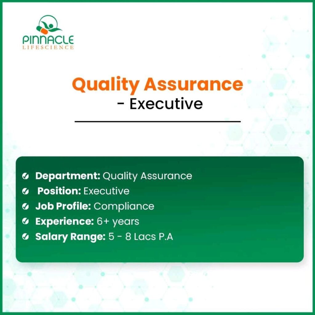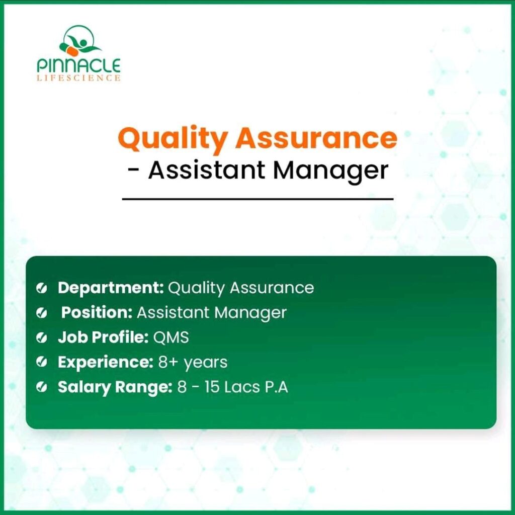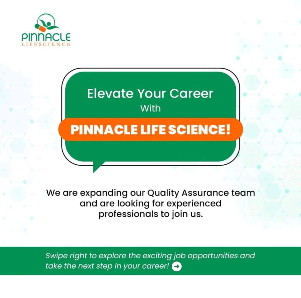Join Our Quality Assurance Team! Pinnacle Life Science is hiring for Assistant Manager and Executive roles in Quality Assurance.