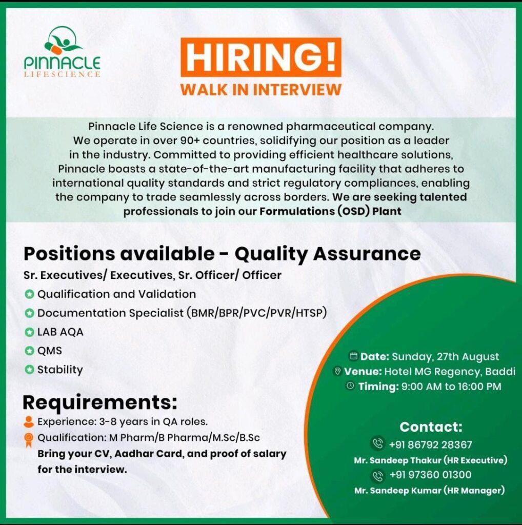 Pinnacle Life Science is a renowned pharmaceutical company. We operate in over 90+ countries, solidifying our position as a leader in the industry. Committed to providing efficient healthcare solutions, Pinnacle boasts a state-of-the-art manufacturing facility that adheres to international quality standards and strict regulatory compliances, enabling the company to trade seamlessly across borders. We are seeking talented professionals to join our Formulations (OSD) Plant