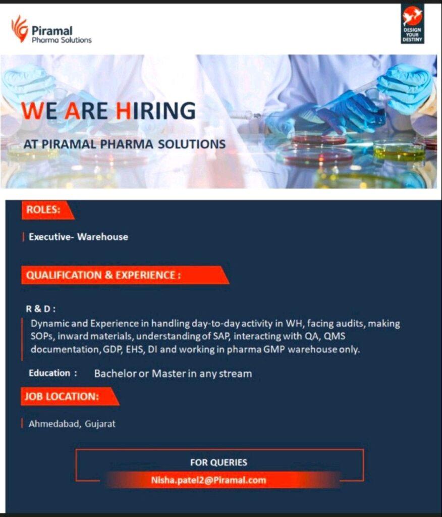 PIRAMAL PHARMA hiring Executive- Warehouse department