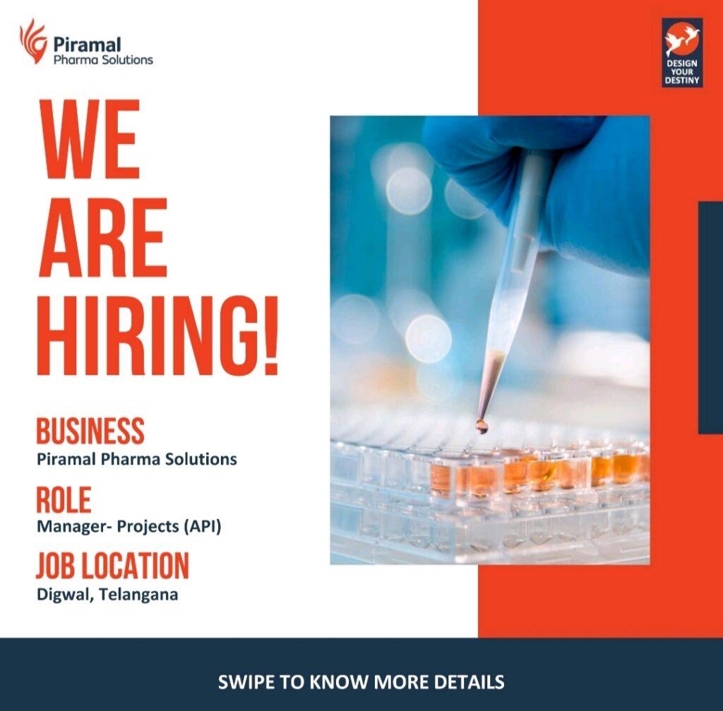 Piramal Pharma hiring for Manager- Projects (API) Digwal, Telangana location