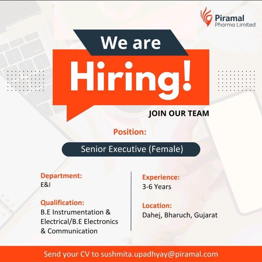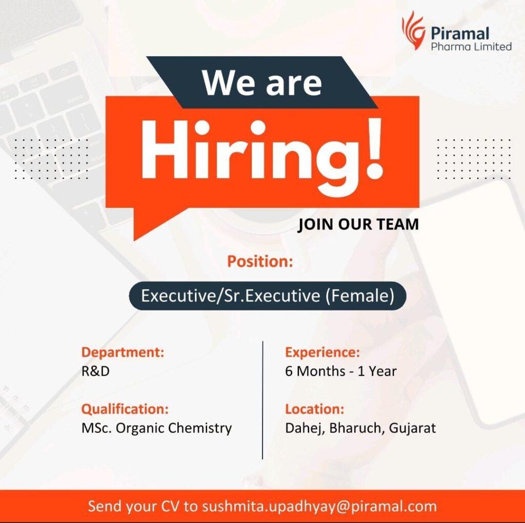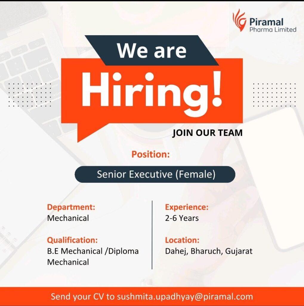 Send your CV to sushmita.upadhyay@piramal.com