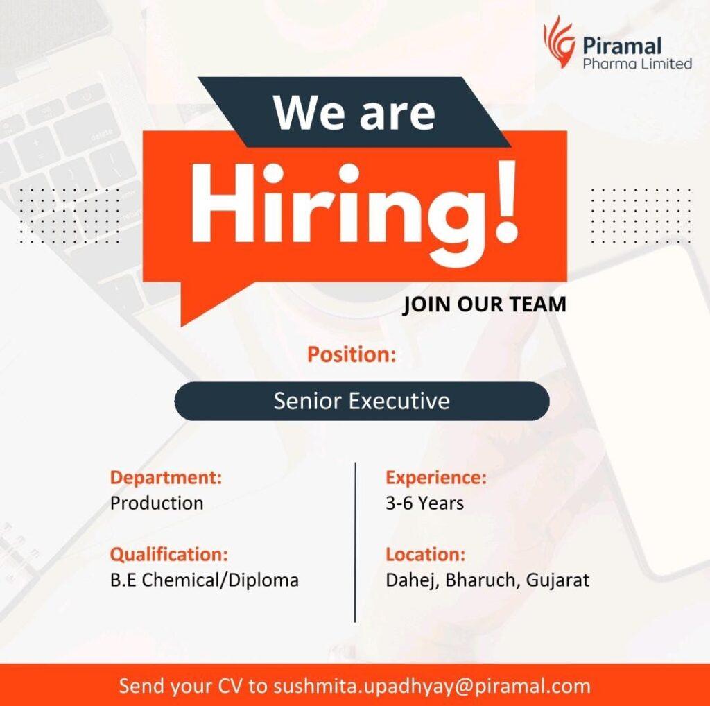 Piramal Pharma Limited multiple job openings in Engineering, Production, R&D department