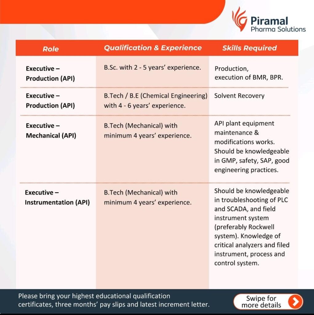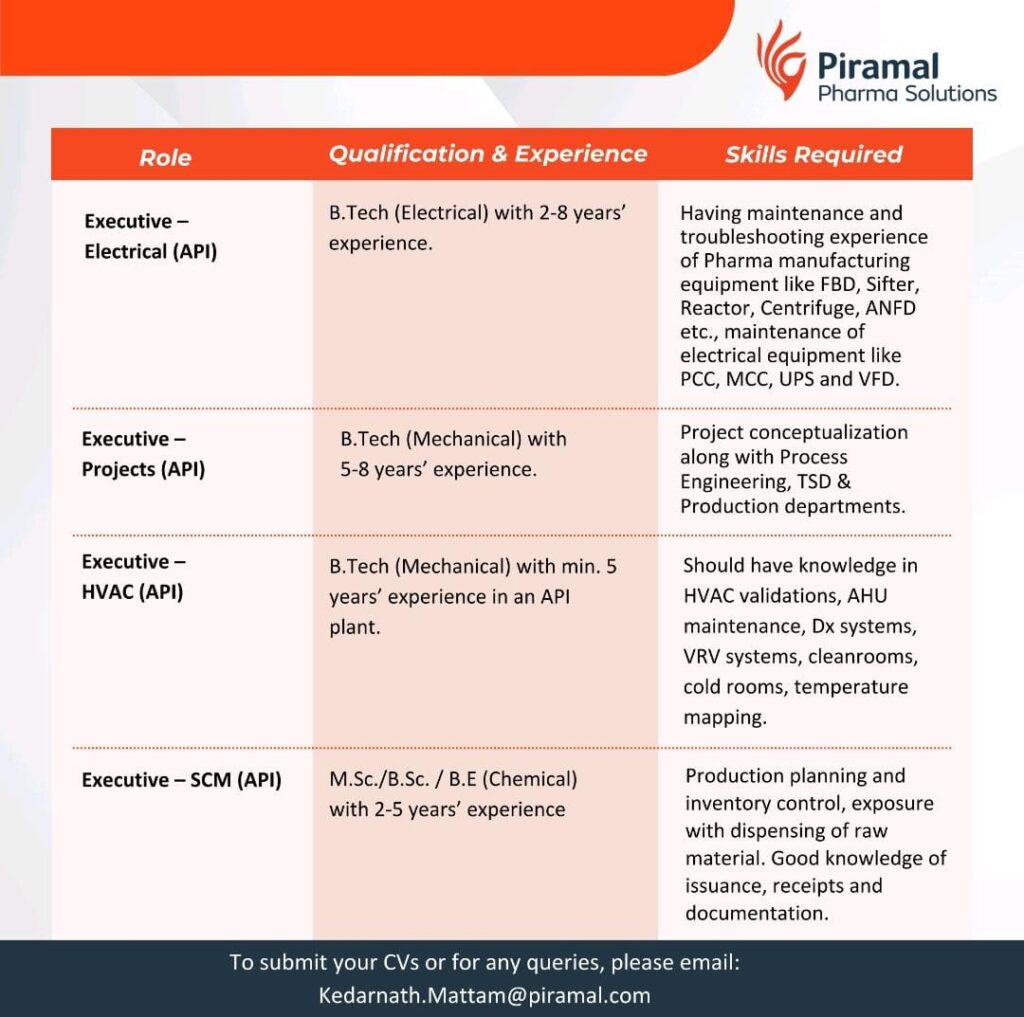 To submit your CVs or for any queries, please email: Kedarnath.Mattam@piramal.com