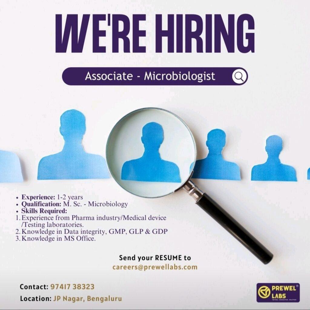Prewel Labs hiring for Microbiology department