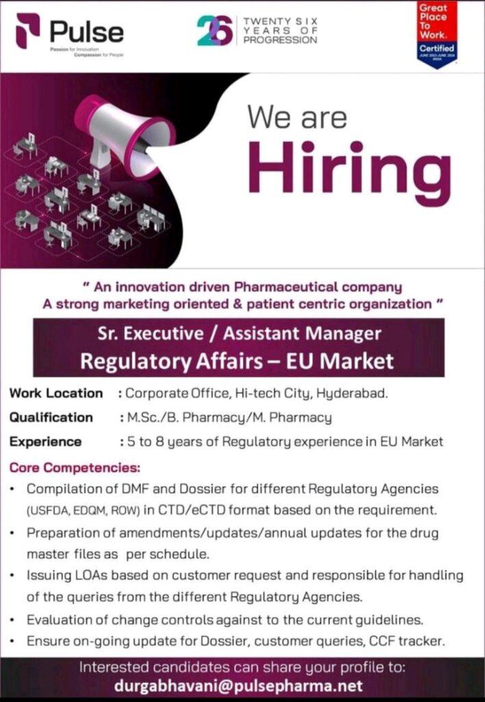 Interested candidates can share your profile to: durgabhavani@pulsepharma.net