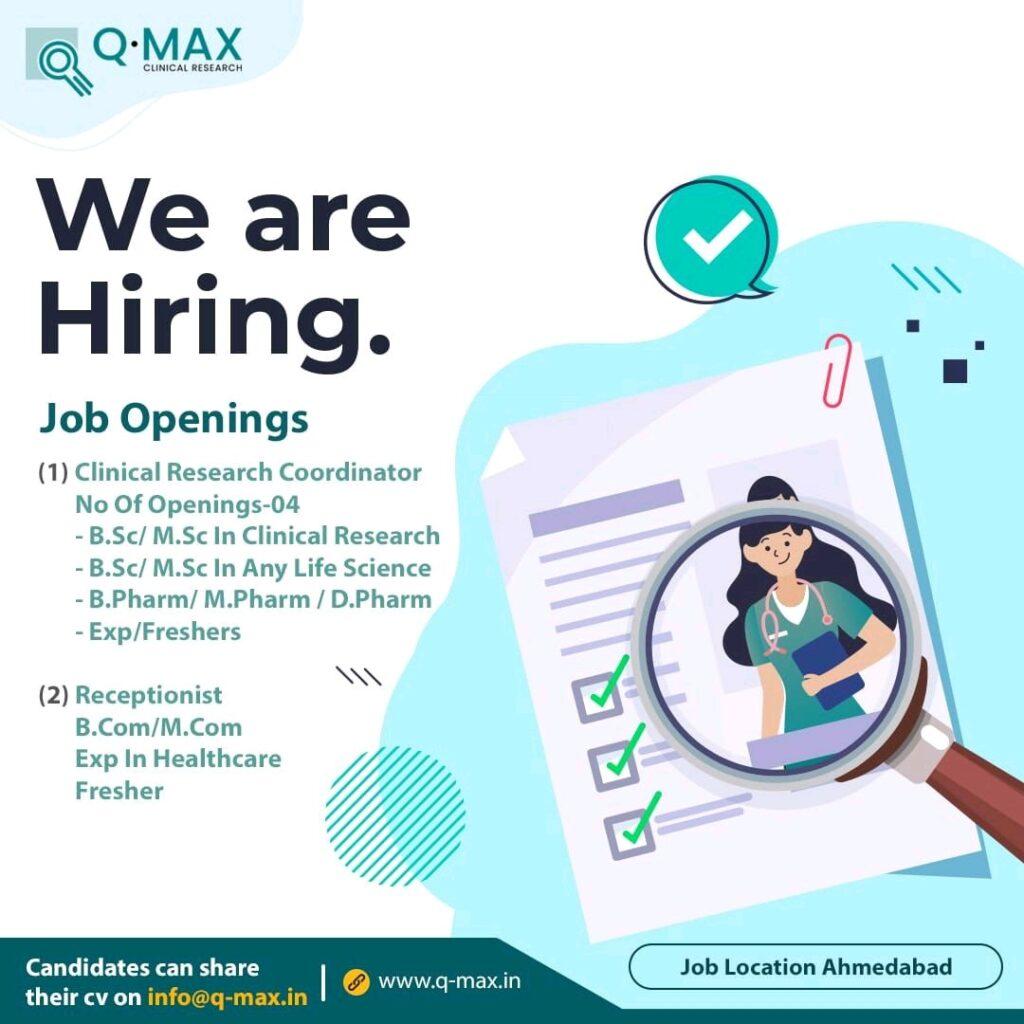 Q.MAX CLINICAL RESEARCH hiring Freshers B.Pharm/ M.Pharm / D.Pharm/ B.Sc/ M.Sc In Any Life Science, B.Com/M.Com || Apply Now