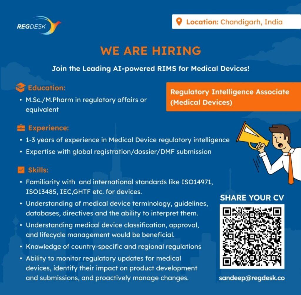 REGDESK job vacancy for Regulatory Intelligence Associate (Medical Devices) department