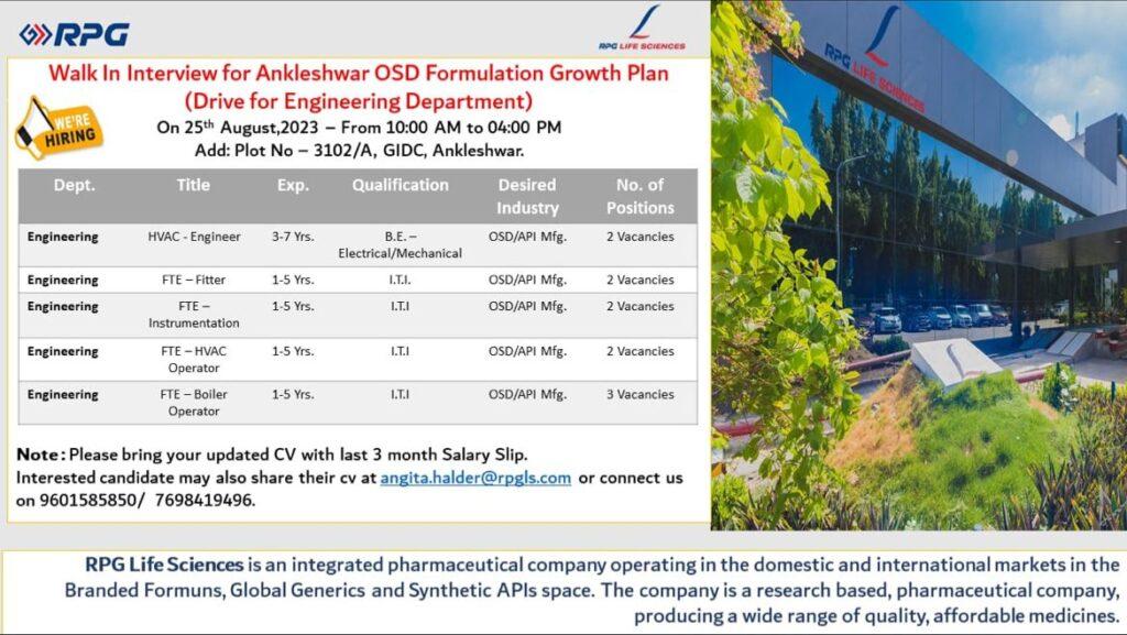 Walk In Interview for Ankleshwar OSD Formulation Growth Plan