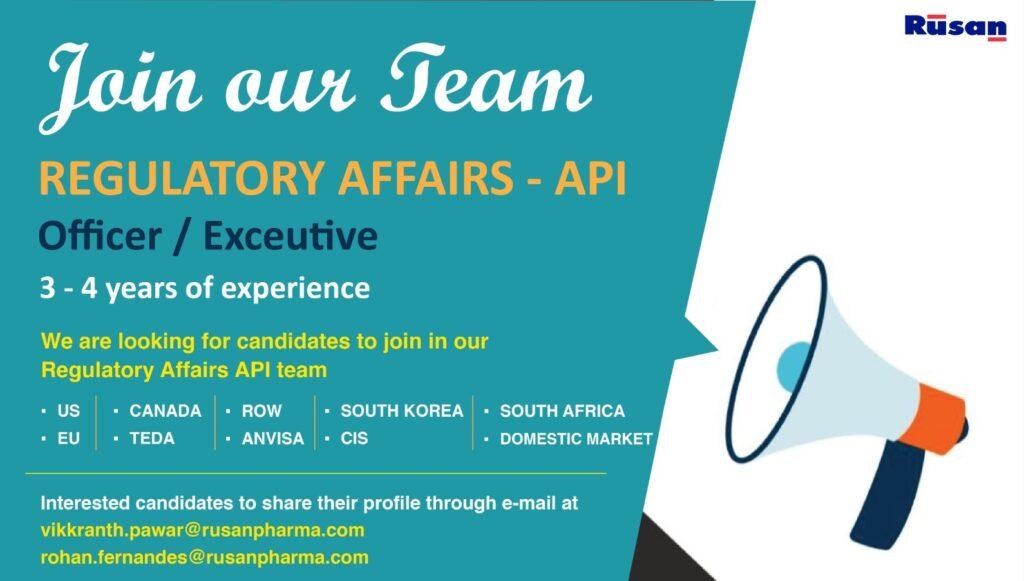 We are looking for candidates to join in our Regulatory Affairs API team