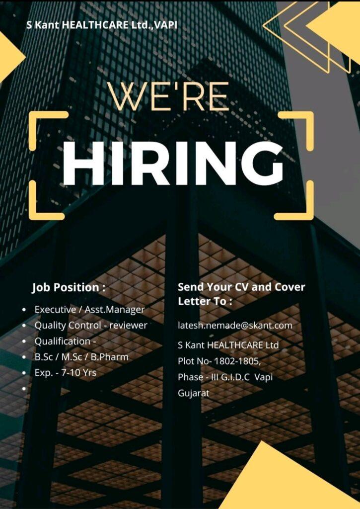 S Kant Healthcare Ltd hiring for Executive / Asst. Manager- Quality Control – reviewer