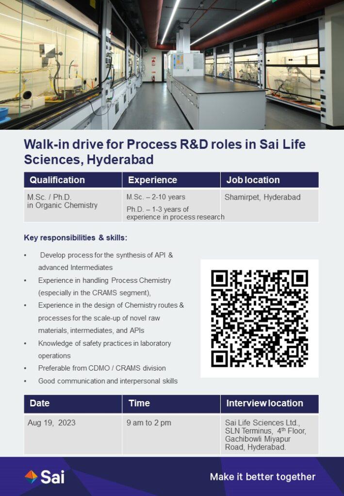 Sai Life Sciences- Walk In Drive on 19 August 2023