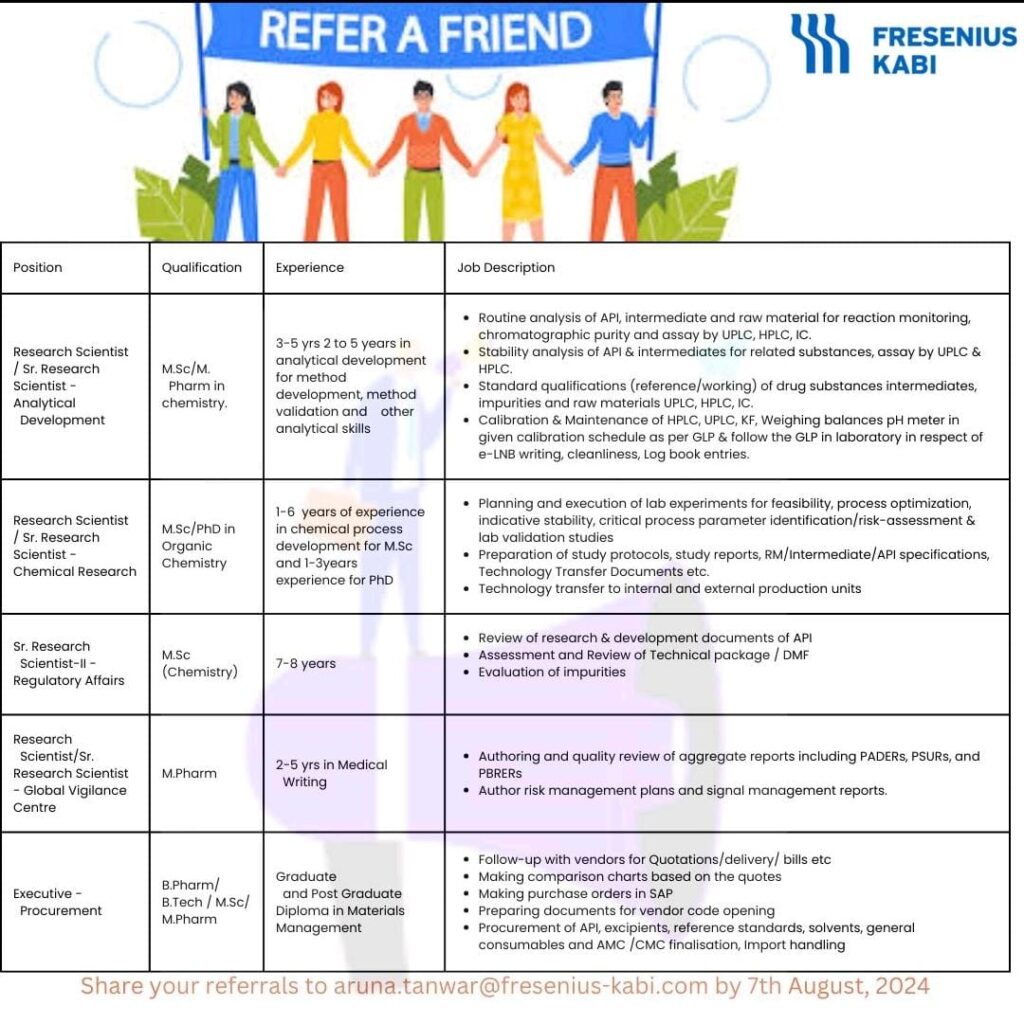 Share your referrals to aruna.tanwar@fresenius-kabi.com by 7th August, 2024