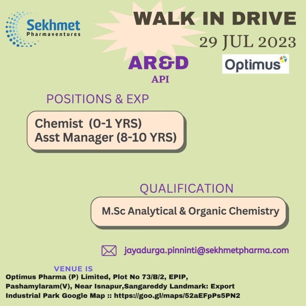 Sekhmet Pharmaventures Walk In Interview on 29 July 2023 | Freshers & Experience| AR&D