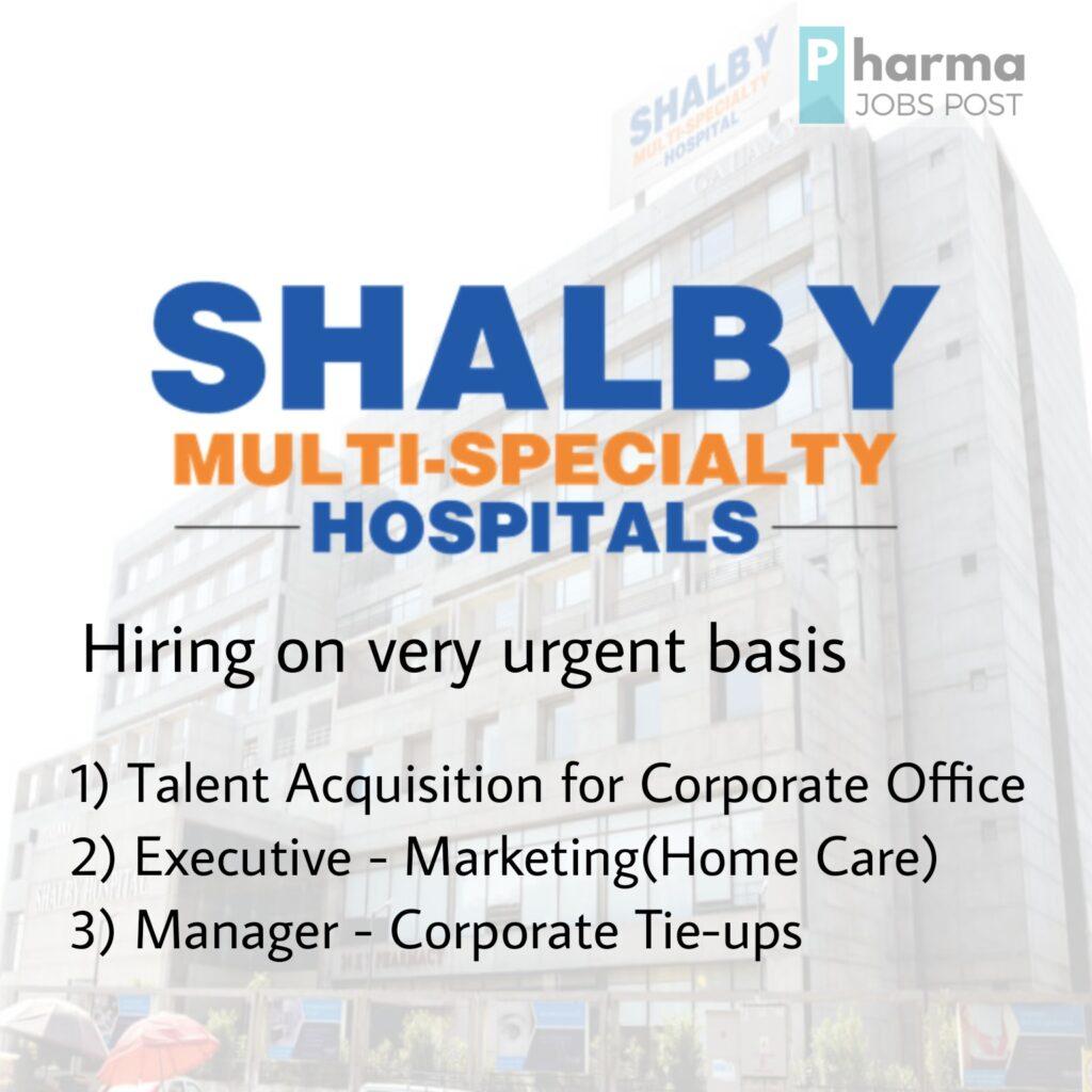 Shalby Limited hiring on very urgent basis for Talent Acquisition for Corporate Office, Executive – Marketing(Home Care), Manager – Corporate Tie-ups for Naroda unit – Apply Now