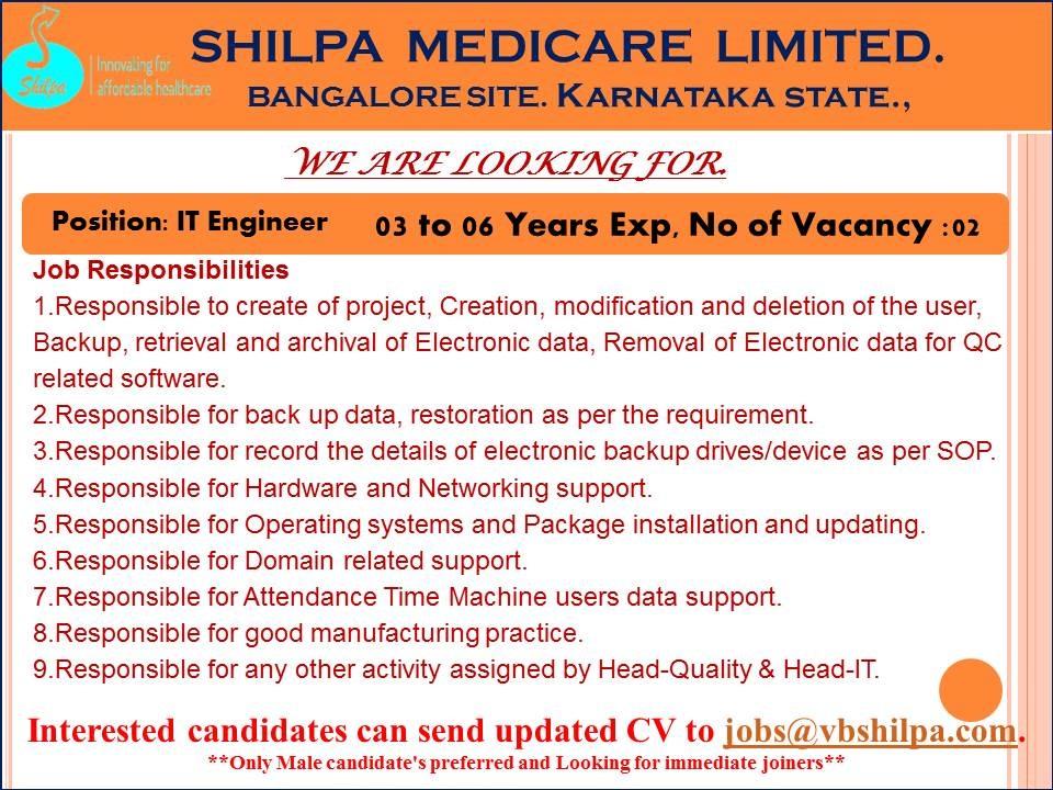SHILPA MEDICARE LIMITED Hiring for Warehouse & IT Engineer – Apply Now