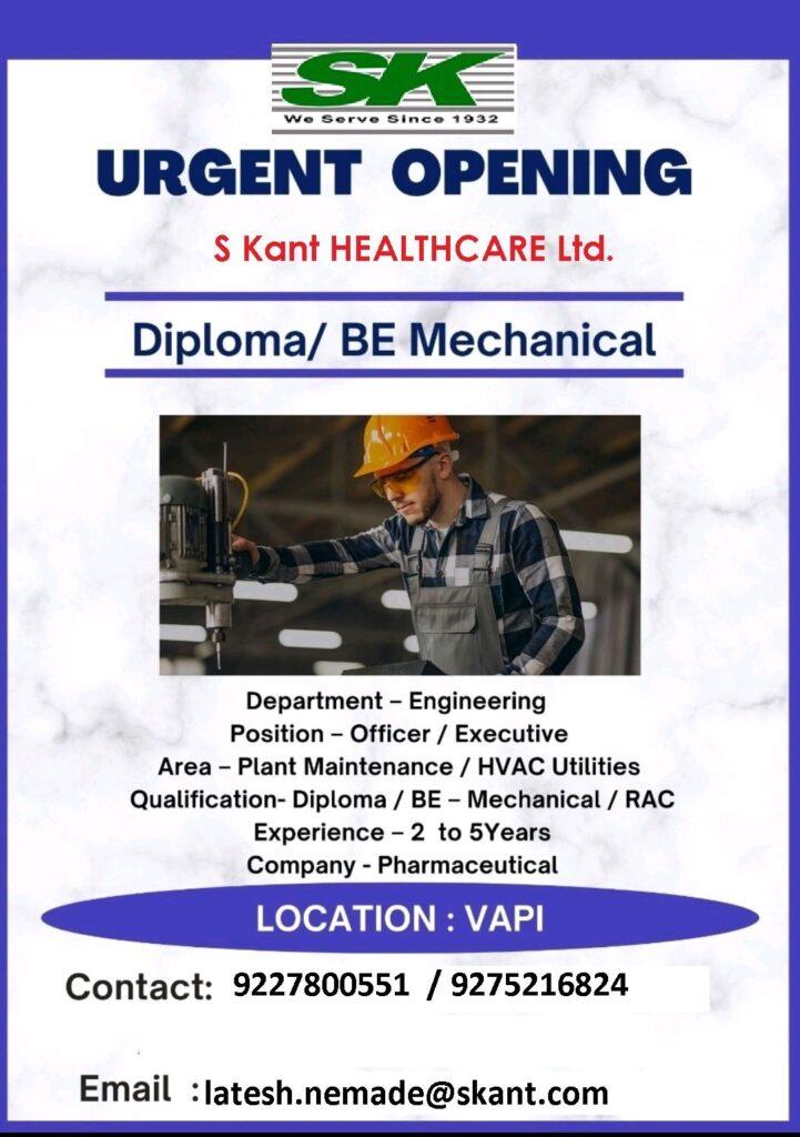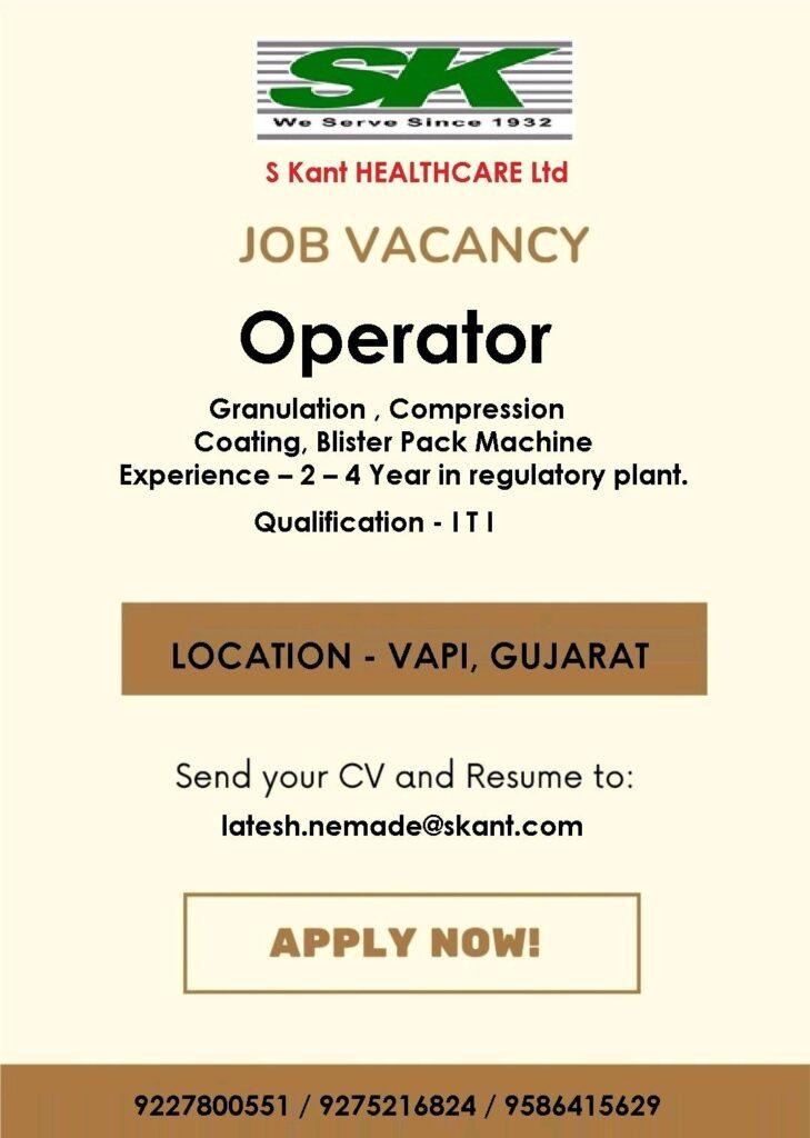 S Kant HEALTHCARE Ltd Job Vacancy for Operator- Granulation, Compression Coating, Blister Pack Machine & Officer / Executive- Engineering department