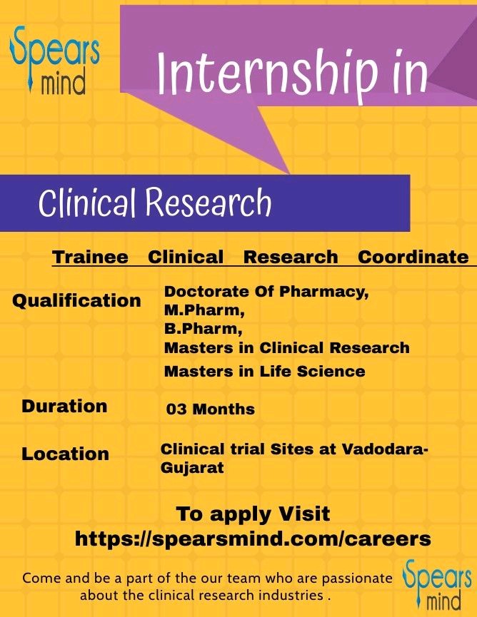 Spears Mind Research Solutions 03 Months Internship for Doctorate Of Pharmacy, Masters in Life Science, M.Pharm, B.Pharm, Masters in Clinical Research in Clinical Research Department