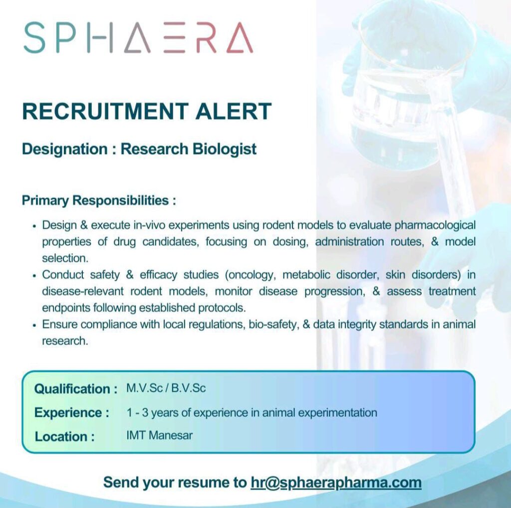 Send your resume to hr@sphaerapharma.com