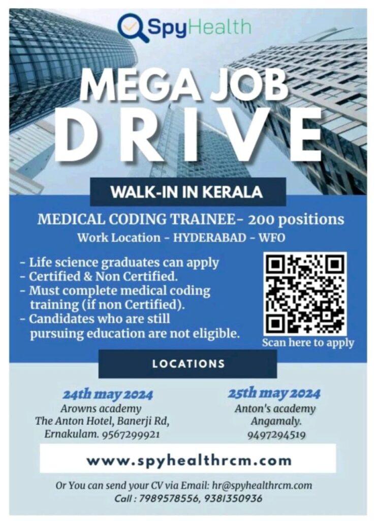 Spy Health Mega Job Drive for Medical Coding Trainee Position- 200 positions, on 24th & 25th may 2024