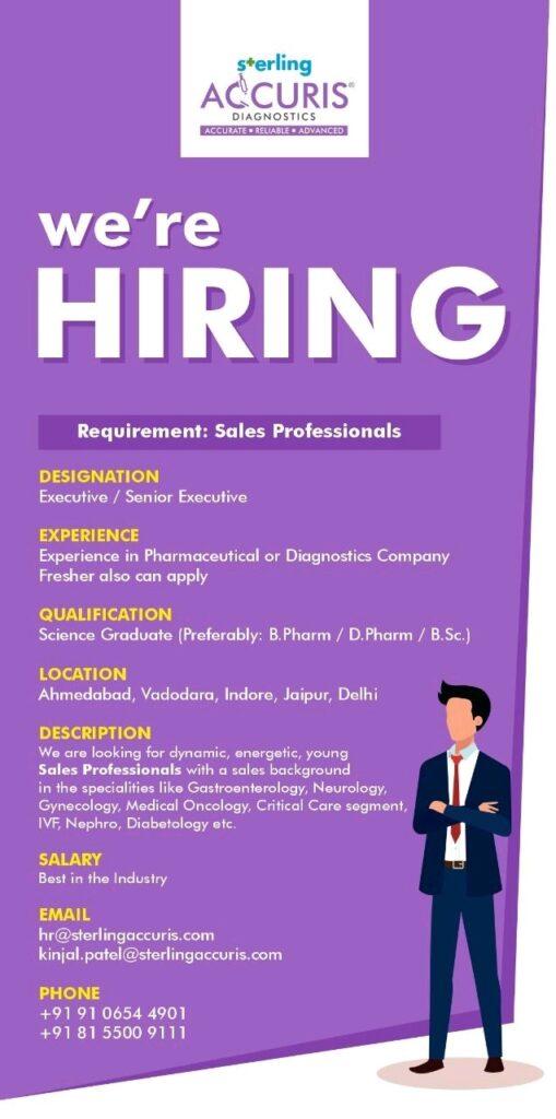 Sterling Accuris Diagnostics hiring B.Pharm / D.Pharm / BSc. Freshers & experience for Sales Professionals