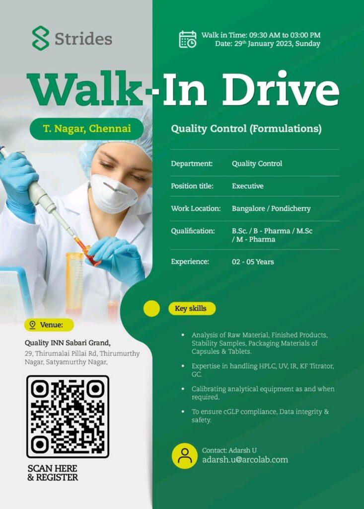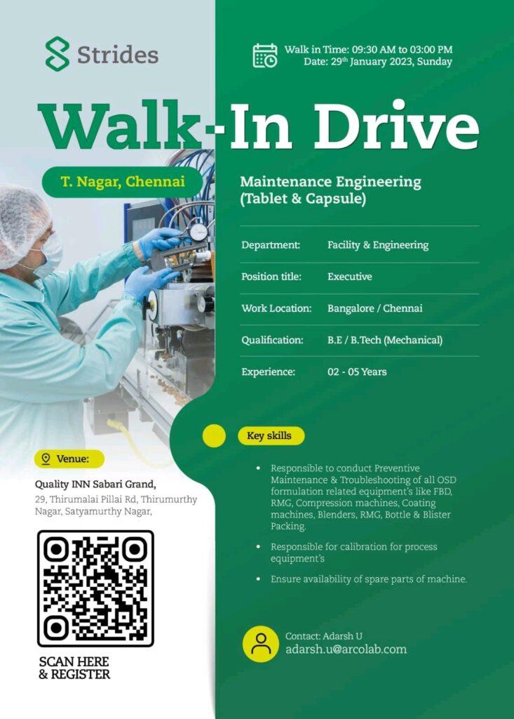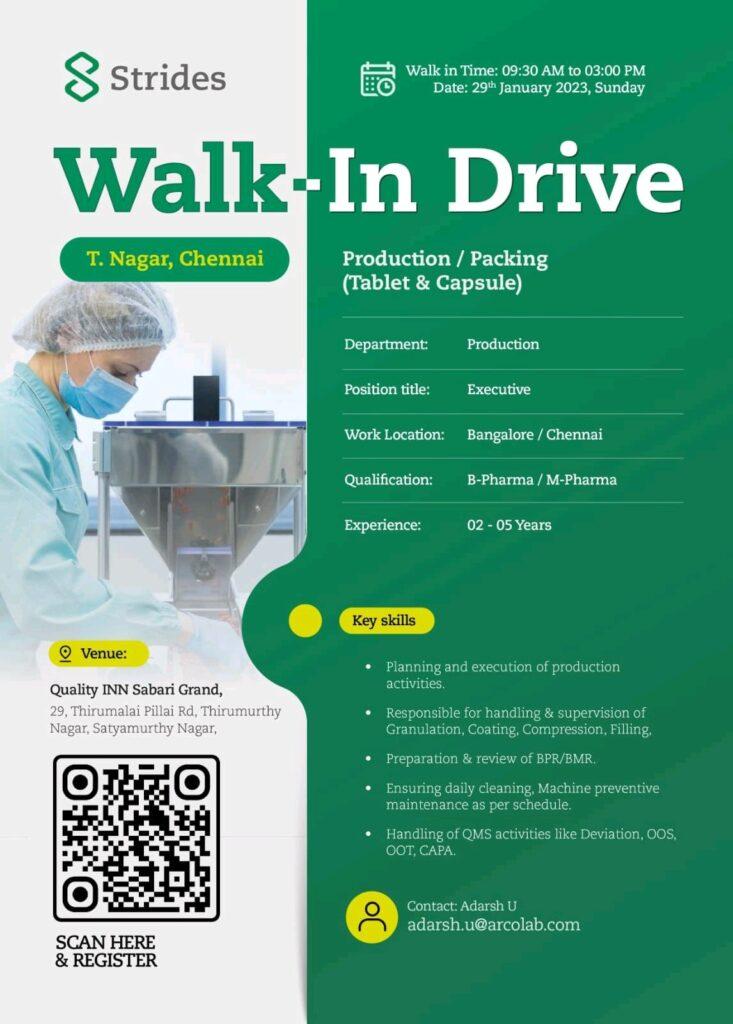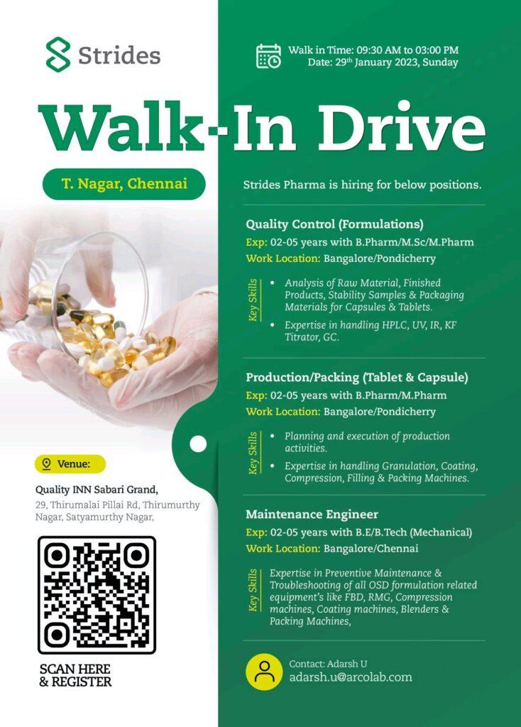 Strides – Walk-In Drive for QC, Production, Packing (Tablet & Capsule), Maintenance Engineering on 29th January 2023