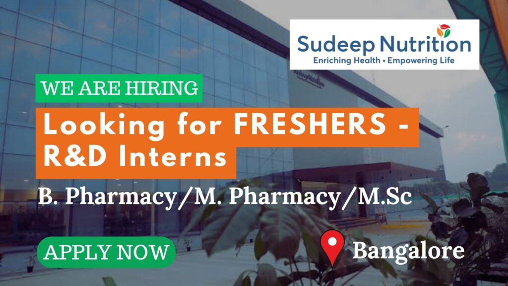 PHARMA JOBS POST > FRESHERS > Sudeep Nutrition Looking for R&D Interns