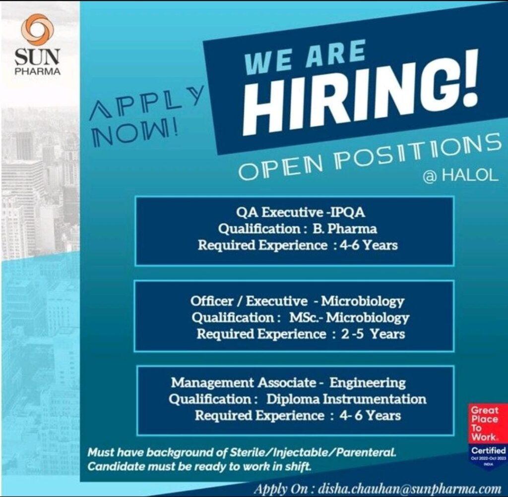Must have background of Sterile/Injectable/Parenteral. Candidate must be ready to work in shift.