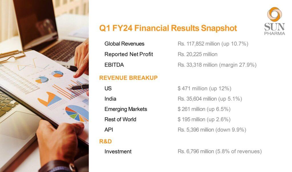 Sun Pharmaceutical Industries Limited reported financials for the first quarter ending June 30th, 2023.