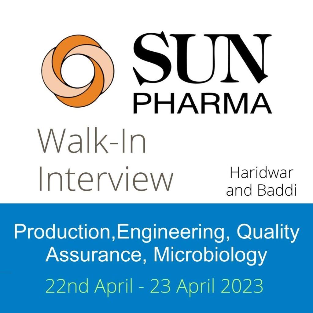 Sun Pharma – Walk In Interviews at Haridwar and Baddi on 22nd April – 23 April 2023